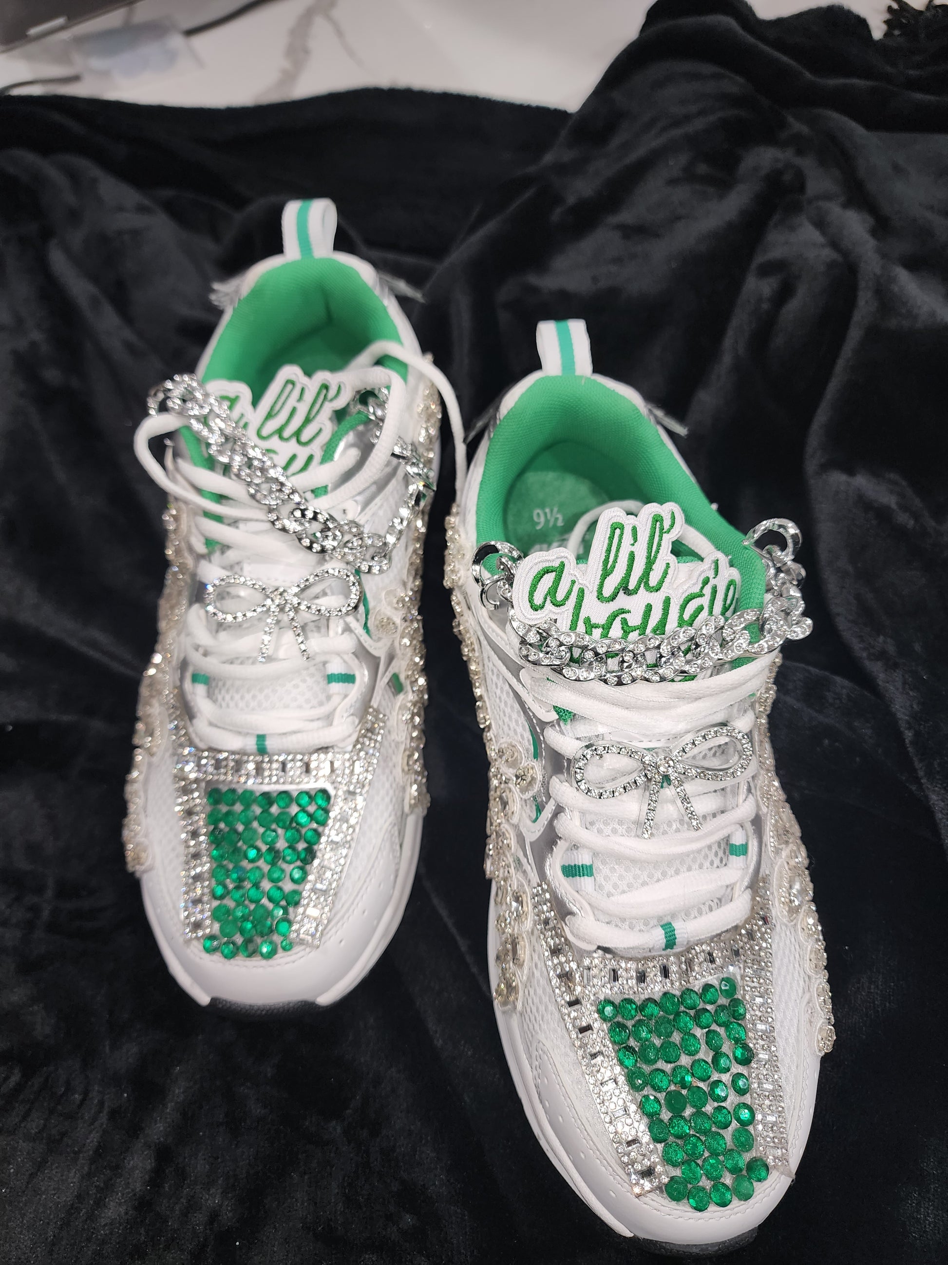 A true collector's gem for die-hard fans who want to strut their green and silver pride in style. From the laces to the heel, every inch sparkles with personality and team spirit. Perfect for game day, casual outings, or whenever you want to show your Eagles love with serious flair. Don't miss out on this exclusive, glittery masterpiece!