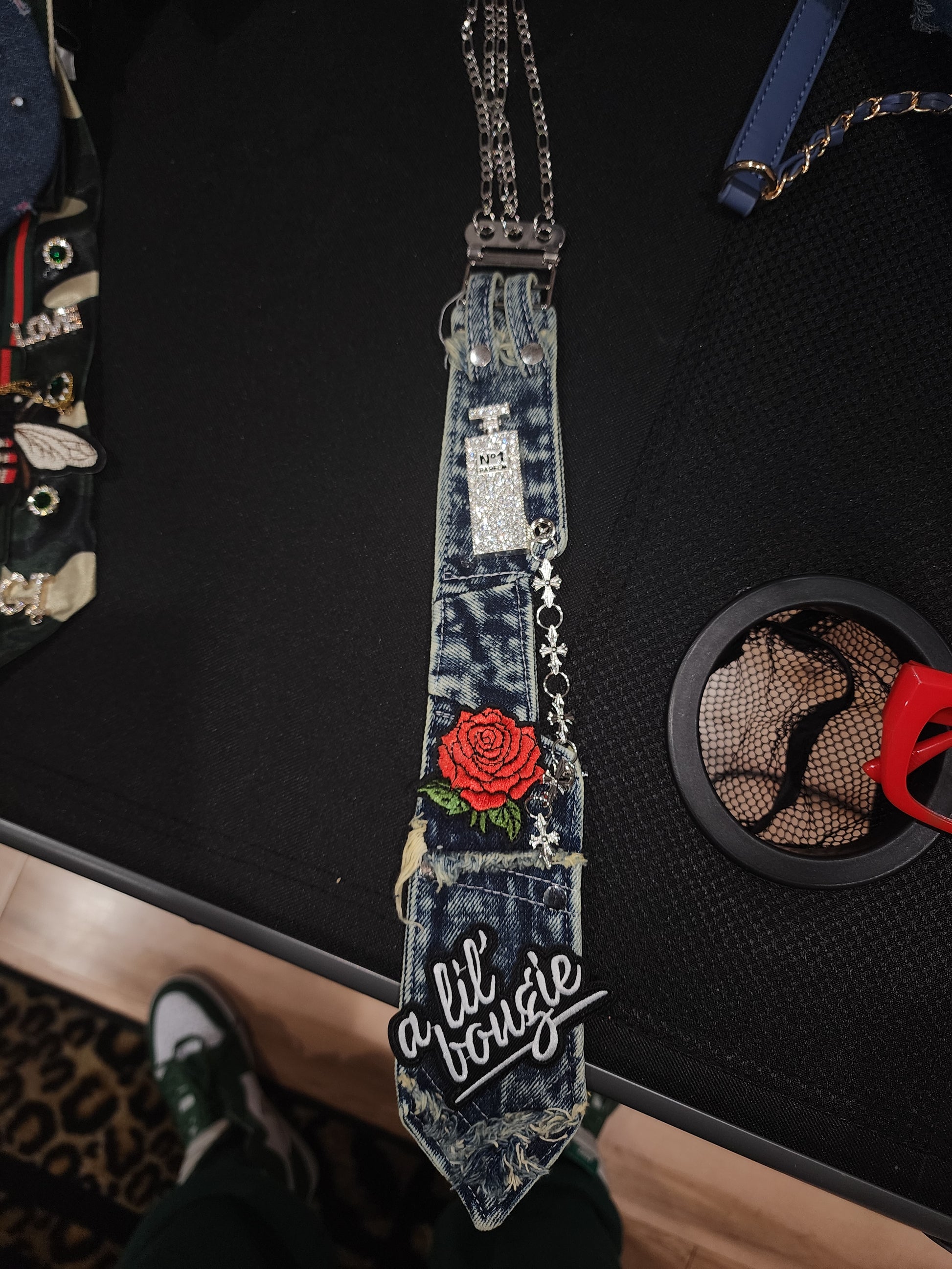 Complementing the bag is a refined tie that adds an unexpected layer of sophistication to any outfit. The chain necklace sets it off for an evening out, church event or bring a little spice to denim Friday's at work.